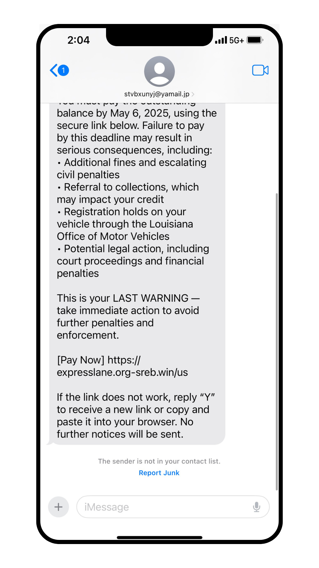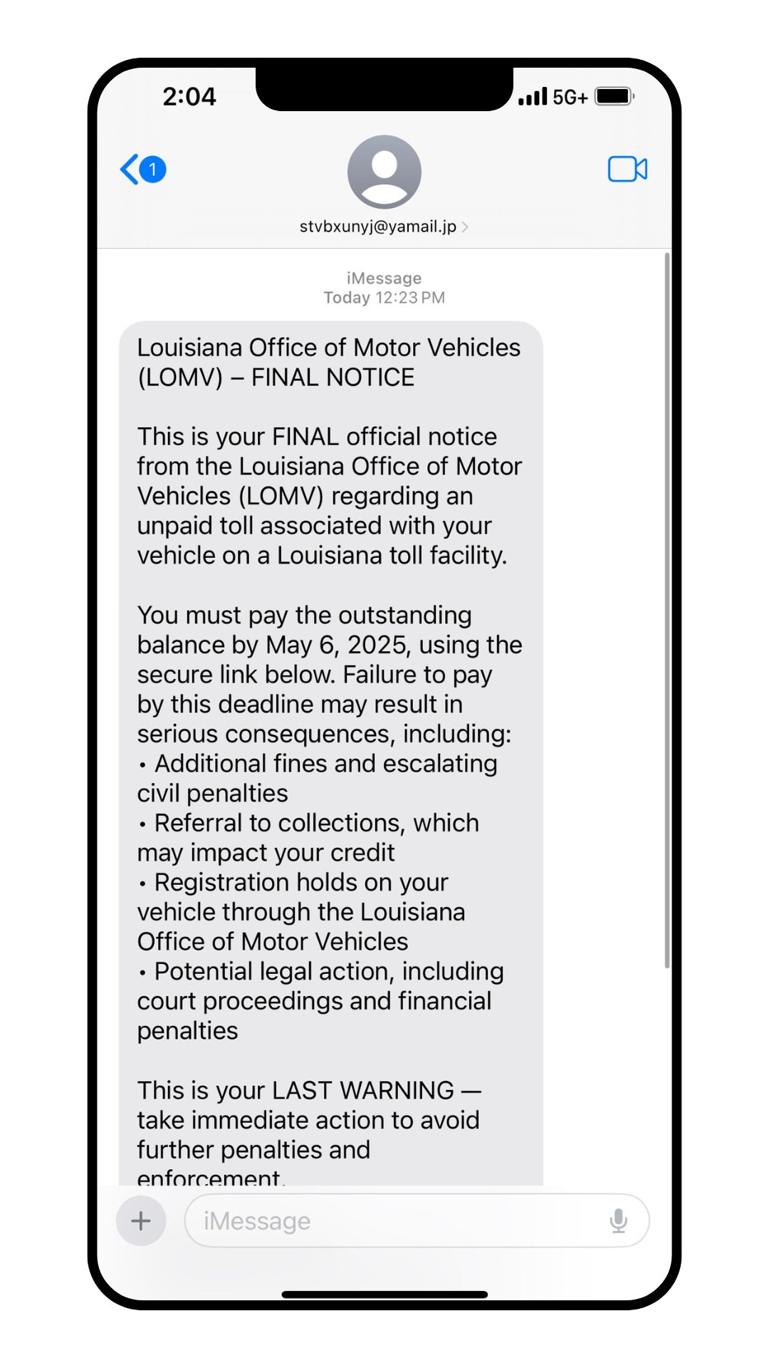 Example of a Scam Text